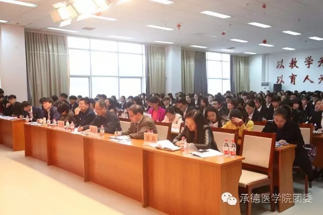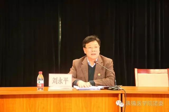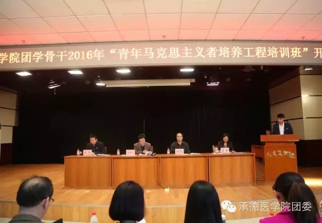 “为深入贯彻落实习近平总书记系列重要讲话精神,进一步加强对我校广大团员青年综合素质的培训,提高广大团员理论水平,增强其使命感和责任感,2016年4月11日承德医学院团学骨干“2016年青年马克思主义者培养工程培训班”开班仪式在我校多功能厅隆重举行。党委书记刘永平,副校长唐世英,学生处处长、团委书记沈浩,社科部主任梁莉,团委副书记白江涛及各院系辅导员老师们出席开班仪式,教师团干部、学生会、大学生社团联合会、大学生科技创业联盟主席团、部长、部分社长;大一至大三年级部分班级团支书、班长;团委青年传媒中心成员等331人作为培训学员参加了本次培训,会议由校团委夏艳华同志主持。” 随后,团委沈浩书记宣读了本次培训班成员须知,并公布此次培训班课程安排,明确提出了奖惩制度、纪律要求以及结业要求等。 唐世英副校长首先对我校“2016年青年马克思主义者培养工程培训班”的顺利开班表示祝贺,阐明了“青马工程”的重要作用,并从四个方面对全体学员提出了期望和要求:一是希望同学们在自觉主动接受党的科学理论武装,贯彻党的要求,在勇敢地担负起时代重任上做一个“先行者”;二是希望同学们能够提高自身理论修养和实践能力,做一个“学习者”;三是希望同学们通过学习,深刻领会“勤学、修德、明辨、笃实”的八字真经以及“志存高远、德才并重、情理兼修、勇于开拓”十六字诀的深刻内涵,做一个“弘扬者”;四是希望同学们积极传播社会主义核心价值观,传递青春正能量,争当先锋模范,积极示范引领,在思想、学习、工作和生活上积极进取、乐观向上做一个“传播者”。 学校党委书记刘永平以《 贯彻落实“两学一做”,承担青年历史使命,为党性灵魂“充电蓄力”》为题做了专题讲座。刘永平书记介绍了习总书记的系列重要讲话内容,强调了落实全面从严治党的重要性,并提出作为党员要积极保持对党的纯洁性和先进性以巩固党的执政基础。 随后,刘书记从“何为两学一做”、“学习两学一做的目的”、“学习两学一做的总体要求”、“如何学习两学一做”等方面对“两学一做”进行了深入、细致、全面、深刻的介绍、分析与阐释,并针对“两学一做”对当代大学生、团学组织干部提出了三点殷切期望:一是要有看齐意识,务求政治合格;二是要有进取精神,立志做大事;三是要有担当责任,甘于奉献付出。 本次培训,刘书记将自己的心得体会“深刻理解才能高度自觉,真正自信才能由衷自愿,理论清醒才能政治坚定”与学员共勉,深入浅出地为大家讲解培训课程,气氛严肃活泼,掌声不断。2016年青马班将围绕习近平总书记系列重要讲话、“五大发展理念”、人才培养、高校团学组织工作等主题邀请学校有关领导及老师为学员进行授课宣讲;继续开展“团干部如何健康成长”大讨论及户外素质拓展训练。青马班将在推动全校共青团思想建设、组织建设的同时,积极提升青年学生的思想政治素质、政策理论水平、创新能力、实践能力和组织协调能力,并正确引领广大青年以坚实的理论基础、强烈的使命担当,用青年学子的智慧凝聚起实现中华民族伟大复兴中国梦的磅礴力量。