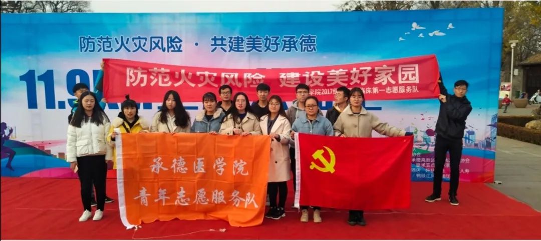 为深入贯彻和学习习近平总书记为国家综合性消防救援队授旗训词精神,增强全民消防安全忧患意识,做到警钟长鸣,在第28个“119消防日”来临之际,承德医学院中医学院2017级中西医临床第一志愿服务队在中医学院2015级、2017级辅导员岳丽莹老师、苏治中老师及病理生理教研室副主任董雅洁老师的带领下,联合承德市消防支队、承德市马拉松协会、承德市碧园社区、各界公益志愿队、中医学院学生第三党支部、基础医学院第七党支部及我校保卫处消防科于2019年11月1日—11月9日开展了以“防范火灾风险,建设美好家园”为主题的志愿服务活动。承德电视台、承德消防、有范承德等媒体参与了活动报道。 本次志愿服务活动包括了5个部分。“创消防安全校园,让你我远离火灾”主题教育;“多一些消防知识,少一分火灾威胁”知识竞赛;“创消防安全社区,让火灾远离生活”采访、安全排查;“全民动员学消防,和谐社会奔小康”全民宣传;“人人防火为安全,防火安全为人人”马拉松公益跑。 11月1日,志愿者服务队在教学楼408开展了消防安全主题教育讲座,中医学院学生第三党支部参加了活动。班长王东阳担任主讲人,讲述了校园火灾的危害和基本消防安全知识,带领志愿者们共同打造和谐的承医校园。11月2日,志愿服务队参加了“河北省消防知识互动”网络竞赛。通过有奖竞答的形式,调动志愿者们的积极性,在竞赛中学习消防知识,让消防安全深入人心。 11月5日上午,志愿服务队前往了“全国基层党支部”市双桥区西大街碧园社区进行社区采访、安全排查,并对70周年国庆阅兵的基层群众代表、承德消防代言人、碧园社区书记兼主任支润芳女士进行采访。她谈到:“防范胜于救灾,社区消防应注重消防、预防、管理相结合,我作为消防代言人,责任重于泰山”。下午,志愿服务队在保卫处消防科李云祥科长的指导下,对校园进行安全排查,为建设和谐校园尽绵薄之力。 11月7日,志愿服务队前往市中心广场参加了 “119消防宣传月”启动仪式。承德市政府副市长、市公安局局长宁金龙,市委宣传部常务副部长王强,市政府副秘书长宋宇宁,市应急管理局局长姜立新,市公安局副局长赵兴海,市文物局副局长周余良,市消防支队,承德医学院等7支志愿队及广大市民等1000余人到场参加活动。启动仪式上,宁金龙副市长致辞并为7支代表队授予队旗,我校志愿队代表董娇志愿者上台接受授旗。活动现场,消防展牌、模拟灭火体验馆、消防装备展区等让广大市民近距离的接触解了解消防,引导全民学习。 11月9日,志愿服务队联合市消防支队、市马拉松协会在避暑山庄德汇门举办了“11.9公益跑”马拉松活动。活动开始,支队侯佳男参谋长和马拉松协会辛科安会长致辞,向到场的运动员、志愿者和市民表示热烈的欢迎。活动现场,志愿者带领运动员和市民参观消防展牌,体验油锅灭火操作并发放消防手册。比赛开始,运动员们挥舞旗帜,从避暑山庄德汇门出发,跑向市消防支队,用奔跑的方式将消防安全意识传递给每个市民。