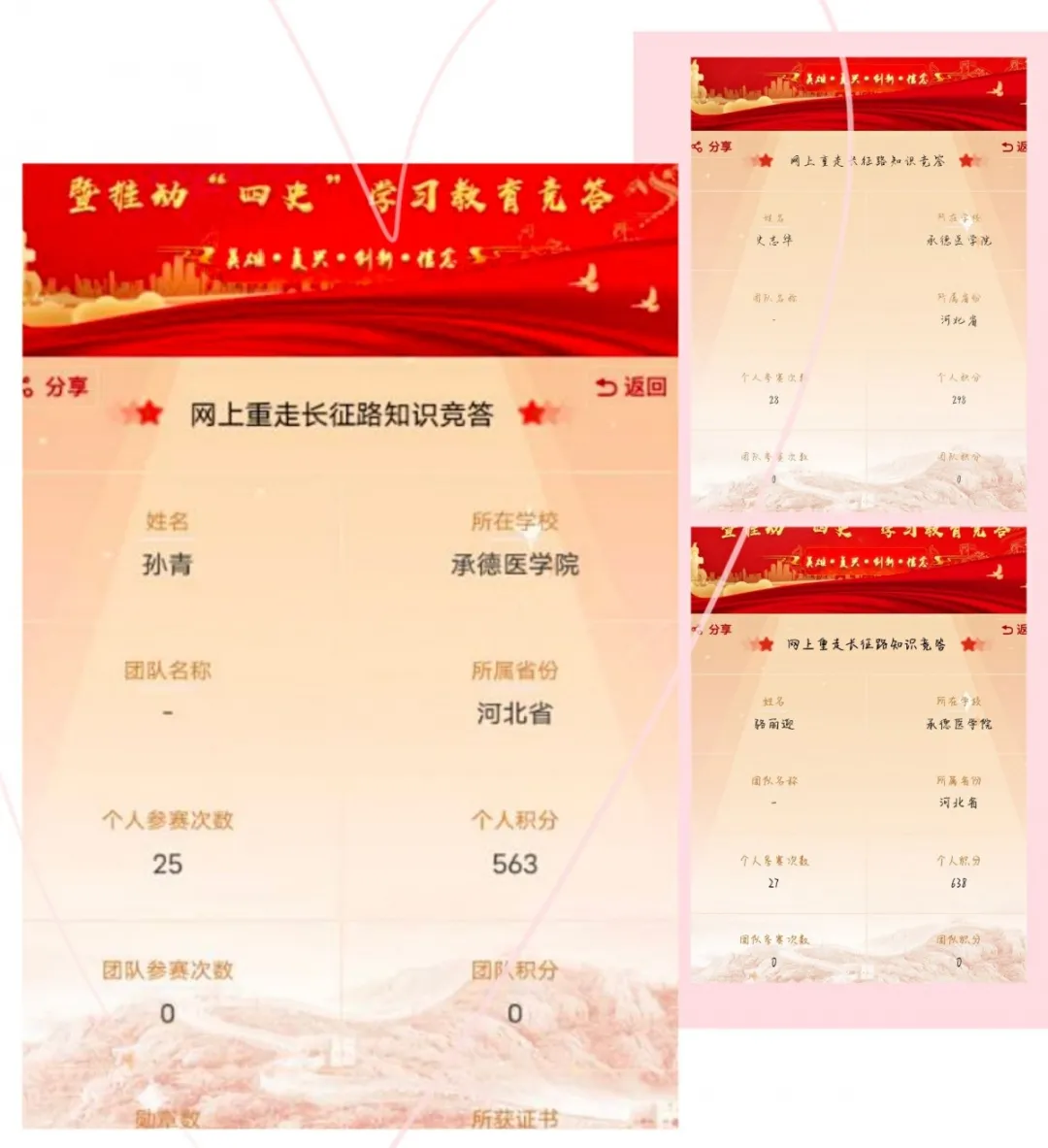 2021年是建党一百周年,为了以史鉴今,传承优良传统,从党的历史中汲取智慧和力量, 2021年4月14至16日,基础医学部2019级临本第五志愿服务队开展了以“学习百年党史,传承红色基因”为主题的志愿活动。自4月14日起,志愿服务队成员通过微信答题平台进行每日党史答题活动,并将继续坚持下去。 4月15日,志愿队自发召开了线上以“学习百年党史,传承红色基因”为主题的党史讲座,为了让志愿者们增加对党史的了解,志愿服务队借助腾讯会议等平台举办了党史学习讲座,通过播放PPT、志愿讲解等方式,阐述了百年党史的各个阶段、各大事件。讲座结束后,参与人员都表示受益匪浅,不仅增加了志愿者们对党史的了解,也加强了志愿者们传承红色基因、汲取红色力量的决心。 4月16日,全体志愿服务队成员参观了校史馆,体会红色精神与承医精神,志愿者们在志愿服务队队长的带领下参观了承载我校历史的校史馆,志愿者们在参观结束后都纷纷表示感受到了我校浓厚的文化底蕴和一脉相承的红医精神,在未来的日子里,志愿者们都会继续努力,为传承我校的优良传统贡献力量。 通过此次活动,志愿者们加深了对党史的理解,坚定了传承红色基因、学习红色思想、在百年党史中汲取前行者力量的决心,鼓舞了志愿者们学习革命先辈坚定理想信念、对党的事业无比忠诚的革命精神,在未来为国家发展和社会进步作出自己的贡献。