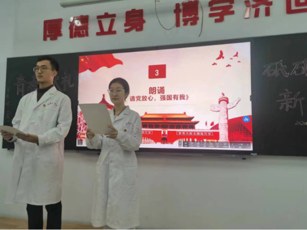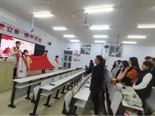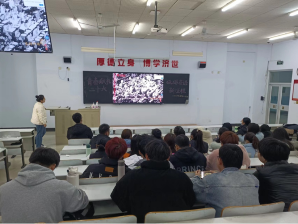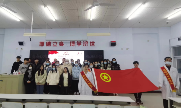 为宣传贯彻党的二十大精神,强化广大团员的政治品格,赓续红色血脉,夯实精神之本,以实际行动庆贺党的二十大胜利召开,11月8日,基础医学院2020级医学影像学第三团支部在教学楼212教室开展了以“青春献礼二十大,砥砺奋斗新征程”为主题的团日活动。 一、回顾百年党史,感悟青春之力 活动开始,团支书吕晓冉通过百年党史时间线,直观地带领团员们回顾了党的百年历史征程,只有回望好过往的奋斗路,把党的历史学习好、总结好,把党的成功经验传承好、发扬好,团员们才能在新的征程上把握好方向,坚定信念,有使命感,展现青春力量。 二、学习会议精神,争做时代青年 活动第二项,团支书吕晓冉以思维导图的形式放映会议精神,通过简单直观的概括,团员们系统地学习了二十大的会议主要的纲领,对会议有了更深的了解,并对此展开了讨论,摘取其中自己感兴趣的方面进行了探讨,怎样能结合自身时代使命,联系实际,务求实效,把党的二十大的部署和要求落实到方方面面。 三、诗歌朗诵,问题竞答—时代青年在行动 优秀团员代表王鑫宇和李明轩,结合二十大会议精神,共同创作了一首献礼二十大诗歌,并进行了朗诵,以诗歌抒怀,用二十大精神激发团结奋进力量。 为了解团员学习二十大情况,验收学习成果,团支书吕晓冉随机抽取两名团员对二十大知识进行竞答,进一步激发团员们学习党的二十大精神的热情,以竞答为契机,形成“以赛促学,以学促践”的浓厚学习氛围。 四、观看二十大会议,重温会议精彩瞬间 团员们观看二十大会议的精彩瞬间,二十大会议虽然结束,但是留下了许多令人印象深刻的瞬间,如甘肃蓝天救援队队长於若飞的发言,中国工程院院士张伯礼在大会堂与其他代表的交谈等全国各地、各行各业的人大代表的精彩瞬间,这些瞬间让团员们真真切切地感受到了党的二十大的内涵与重要意义。 五、展团旗,唱响共青团之歌 活动最后一项,全体团员起立,展团旗,唱响共青团之歌,在团旗的见证下,在响亮的歌声中,团员们作为新时代的青年,通过学习会议精神,勇担时代使命,有所热爱,有所追求。