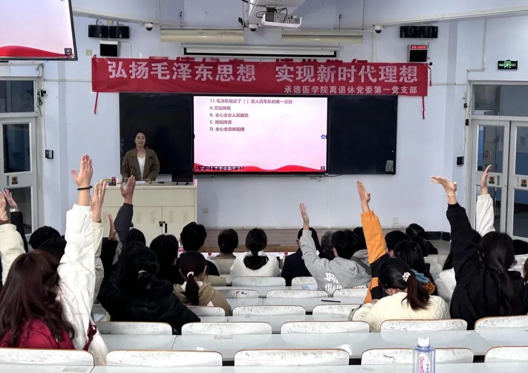 为进一步传承和弘扬毛泽东思想,推进爱国主义教育,传承红色基因,增强社会责任感和使命感,中药学系2023级中药学第一团支部于2024年10月21日上午在教学楼308D开展了以“弘扬毛泽东思想,实现新时代理想”为主题的团日活动。离退休第一党支部书记于正江、离退休第一党支部组织委员单玉秋、离退休党委委员杨建辉、中药学系党总支副书记崔凤侠、中药学系教工第一党支部书记王晨枫及支部党员王小青、杜春蕾、王玥玥参加了本次活动。 活动伊始,团支书介绍了本次活动的主题、目的。随后,全体团员们共同观看了毛泽东思想宣传教育视频,一段段珍贵的历史影像逐一呈现,深入地解读了毛泽东思想。团员们全神贯注,深刻感受到了毛泽东思想的深邃内涵和伟大力量,它不仅是中国革命胜利的重要指引,更是推动国家不断前进的精神支柱。 随后,精彩的诗词朗诵环节将现场气氛推向高潮。《沁园春·长沙》展现出了青年毛泽东的壮志豪情,《毛泽东思想,照亮前行路》阐述了毛泽东思想的博大精深和独特魅力。紧接着,全体团员们齐声合唱了《东方红》和《我爱你中国》两首红色经典歌曲,激荡的旋律和浓厚的爱国情怀在教室内久久回荡。 接下来的知识竞答环节,各小组踊跃抢答,竞争激烈,现场充满了学习与互动的热情。这个环节不仅展现了团员们对毛泽东思想的深刻理解和积极学习态度,增强了活动的趣味性和互动性,也为这场活动增添了无数的精彩瞬间。 在主题宣讲中,单玉秋老师以其深厚的学术造诣和丰富的教学经验,深入浅出地阐述了毛泽东思想的形成背景、发展历程和核心要义。他指出,毛泽东思想不仅是中国共产党的宝贵精神财富,也是中华民族的伟大精神支柱。在新时代,全体团员们仍然需要深入学习和运用毛泽东思想,从中汲取智慧和力量,坚定理想信念,不忘初心使命,勇于奋斗前行。团员们也依次分享了自己对毛泽东思想的认识,从不同角度展现了青年学子对伟人思想的感悟。 崔凤侠副书记为本次活动进行了致辞,她希望团员们能够以本次活动为契机,进一步加强对毛泽东思想的学习和研究,不断提高自己的思想政治素质和理论水平,并且能够将学习成果转化为实际行动,为实现中华民族伟大复兴的中国梦贡献自己的力量。 最后,离退休第一党支部书记于正江对活动进行了总结。他指出,本次活动是一次具有重要意义的思想政治教育活动,通过学习和弘扬毛泽东思想,团员们要更加坚定理想信念,提高综合素质,不断加强学习和实践,为实现新时代中国特色社会主义的伟大胜利而努力奋斗。 此次团日活动,让团员们深刻认识到了毛泽东思想的伟大意义,激发了全体团员们的爱国情怀和奋斗精神。在毛泽东思想的指引下,全体团员们将以更加坚定的信念和饱满的热情努力进取,不懈拼搏,为推动新时代中医药事业建设和祖国繁荣发展贡献青春力量。