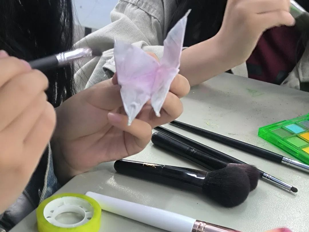 活动初期,社长及有关负责人在手工社活动QQ群发布了活动信息,以接龙的方式组织了同学们积极报名,然后组建了活动群聊实时发布活动信息。活动正式开始前,在社长的组织下,同学们有序进行了签到。活动负责人首先为同学们播放了纸巾玫瑰手工视频。随后活动负责人们为同学们分发了胶带,剪刀,皮筋,刷子,颜料等手工材料。活动正式开始,整个过程中同学们积极参与其中,热情洋溢,认真学习教程,互相合作交流,充分发挥了自己的想象力,做出了玫瑰花朵,彩色蝴蝶,指尖兔子等精美手工作品。 至此,活动圆满结束,大家合影留念,同学们有序离开。通过此次活动,同学们认识到了手工折纸是一门艺术,能够展现出纸张的无限可能,给我们以美好的享受,同时,本次活动让同学们感受到了手工折纸的快乐与兴趣,也进一步培养了同学们的动手能力,增长了同学们对手工的热情。 最后希望同学们积极参与手工社的各种活动,融入手工社的大家庭中,让我们共同努力,共同进步。