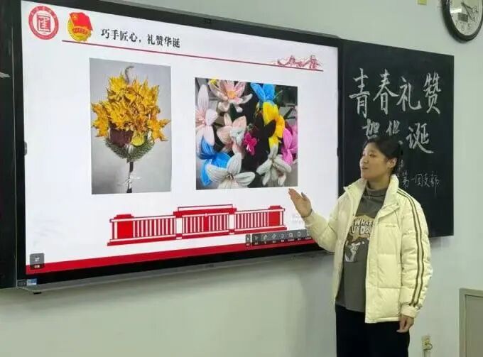 随后的校史分享环节中,两位团员代表以生动的语言再现了学校发展中的关键节点、典型人物与感人故事。真挚的分享让团员们在主动传播中深化了对校史的理解与情感共鸣。聆听校史后,团员们纷纷拿出了精心准备的手工艺品,团员代表逐一登台讲解礼物的设计巧思与背后寓意,用真挚话语让件件手作成为连接青年与母校的情感纽带。