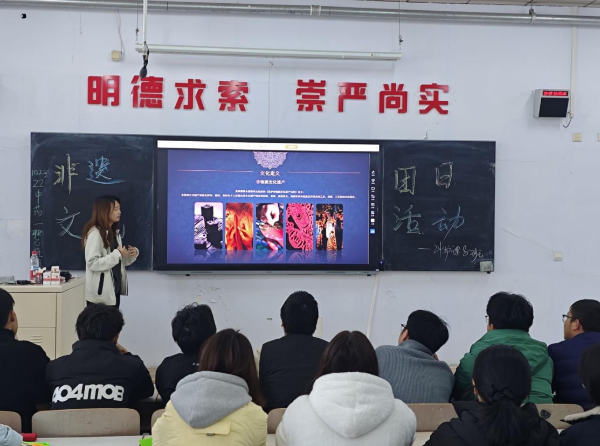 问答争锋,学非遗知识 在校园内开展的非遗知识问答环节以小组竞技的形式有序展开。主题围绕承德非遗的技艺流派、工艺特点及文化内涵设置,覆盖了剪纸纹样寓意、满族手作技法等核心知识。团员们积极抢答、热烈讨论。通过这一环节,团员们打破了“依赖展厅实物”的认知局限,将非遗知识从感性认知升华为系统理解,既进一步夯实了对本土非遗文化的认知深度,也在协作竞技中增强了团支部的团队凝聚力。
