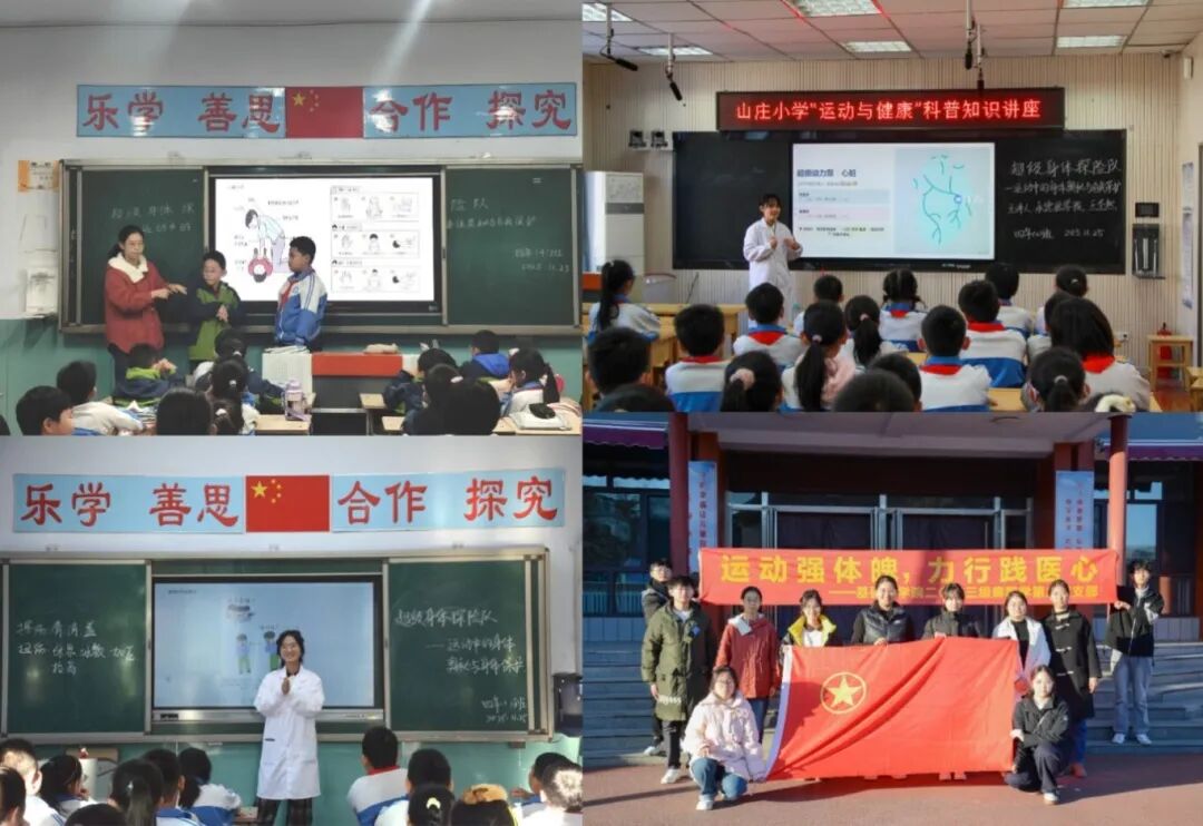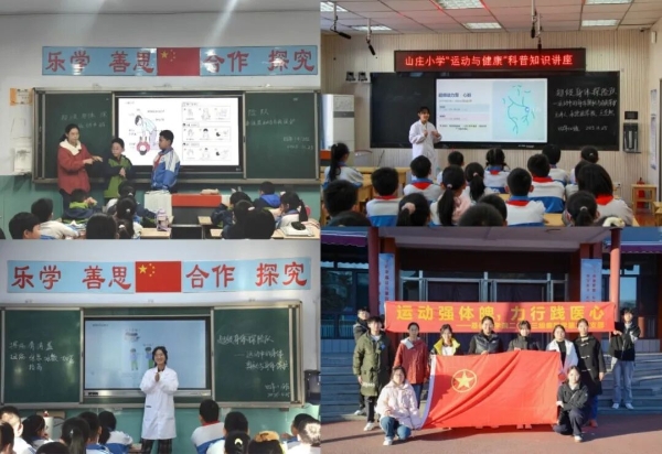 “强少年体魄,铸民族未来” 11月25日,支部全体团员走进了避暑山庄小学,通过情景模拟与互动演示,为180余名小学生讲解了运动防护、海姆立克急救法及心肺复苏等知识,在轻松活泼的氛围中传递了“健康第一”的理念。活动在孩子们心中播下了珍爱生命、守护健康的种子,也深化了团员们在实践中对医学人文的理解,增强了团员们服务社会的使命感。