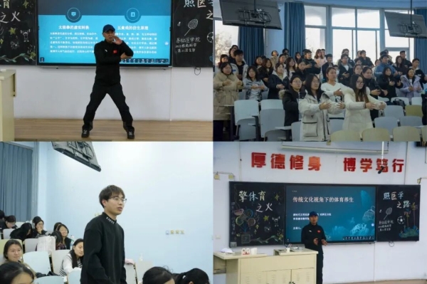 “擎体育之火,照医学之路” 12月2日,团支部特邀刘东民、王志波两位老师进校开展了“传统文化视角下的体育养生”讲座,深入阐述了体育精神与医学职业在坚持、超越、责任等方面的内在联系。王志波老师现场示范了站桩、太极拳“云手”、八段锦等养生功法,并一对一指导了动作要领,激励了团员们以强健体魄承载医者使命,以体育精神涵养仁心仁术。讲座进一步推动了体医融合理念在医学生中的传播,为团员们全面发展注入了精神动力。