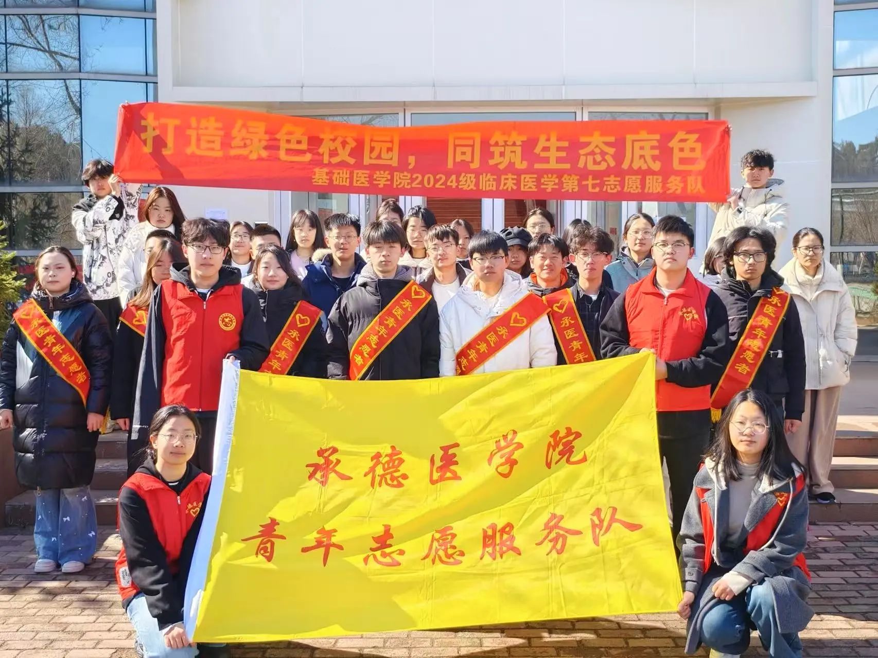 为深入落实绿色发展理念,基础医学院2024级临床医学专业第七志愿服务队于2025年3月16日组织开展了以“打造绿色校园,共筑生态底色”为主题的志愿服务活动。