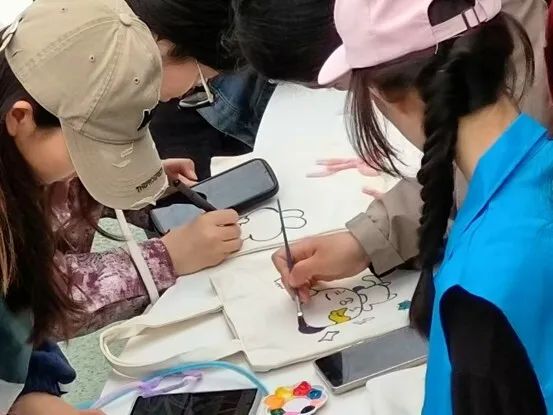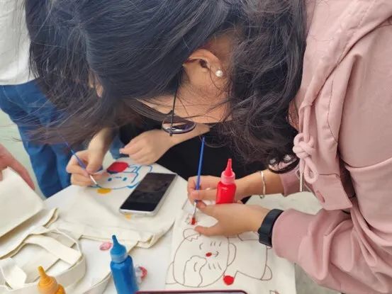 活动当天,工作人员提前到达操场,对活动场地进行了布置,并协调安排人员,以保证活动的顺利进行。活动伊始,工作人员向同学们讲解了活动内容,并发放了环保袋、各色染料、画笔等所需物品。随后,同学们拿起画笔DIY属于自己的环保袋,全场氛围轻松愉悦。同学们创作出了自己满意的作品,全场活动顺利进行。在所有同学创作完毕后,工作人员将作品进行了展示。待同学们有序离场后,工作人员清理了现场。最后,现场工作人员进行集体合影,此次活动圆满落下帷幕。