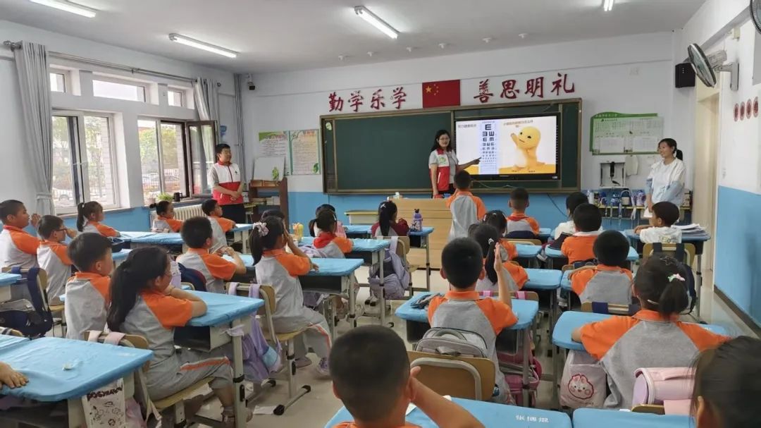 活动伊始,志愿者们分为了四队,分别向一、二年级的两个班级进行了爱眼与急救知识的宣传。首先,志愿者代表向学生们科普了爱眼的重要性与正确的用眼习惯,接着带领学生们一起做了眼保健操。随后,志愿者代表进行了心肺复苏的急救知识科普,学生们认真听讲,并积极回答了问题。