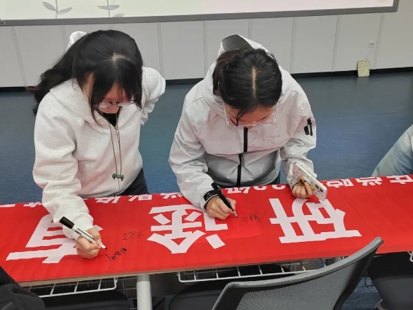 接着,广大团员围绕制定备考规划、复习难点突破、安排日常作息等核心话题展开了热烈交流。团员代表主动分享了自身的学习方法,有效解决了各自备考中遇到的困惑。最后,团员在活动主题横幅上签名,定格考研初心、许下奋斗承诺。