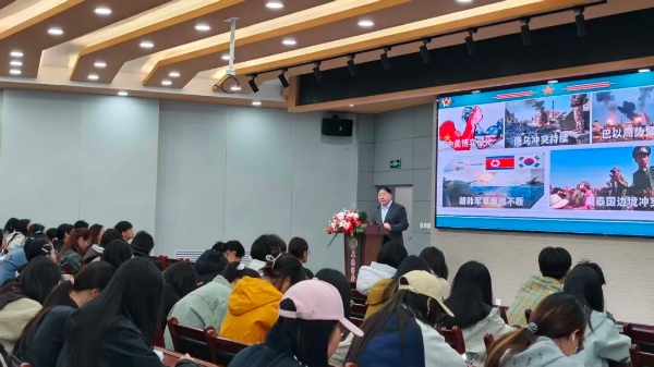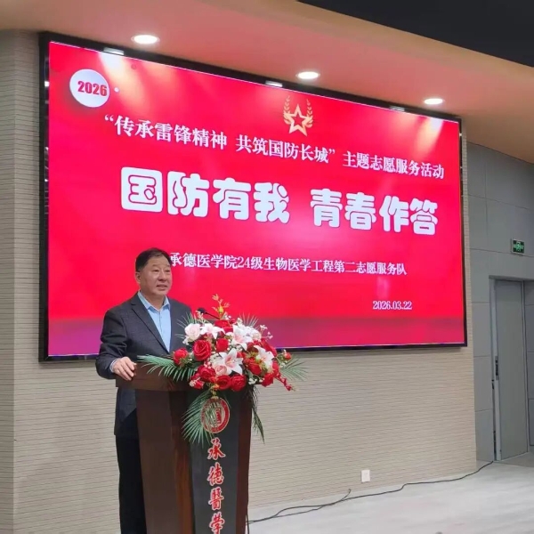 青春铸军魂,雷锋践初心;国防筑长城,青年担使命。为了深入弘扬新时代雷锋精神,增强大学生国防安全意识,承德医学院生物医学工程系2024级生物医学工程第二志愿服务队于2026年3月22日在一站式学生社区服务中心214室,精心策划并开展了以“传承雷锋精神,共筑国防长城”为主题的志愿服务活动。本次活动特邀承德市国防教育协会常务副会长李德坤开展了国防教育授课,志愿服务队全体志愿者及全校百余名同学共同学习了国防知识,以实际行动践行了雷锋精神,筑牢了校园国防教育防线。