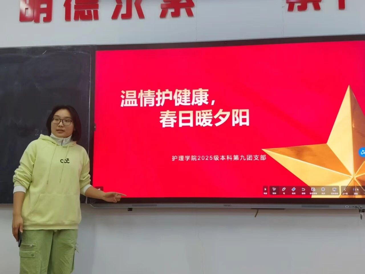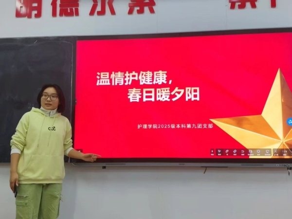 为了传承尊老、敬老的传统美德,将护理学专业知识与社会实践深度融合,护理系2025级护理学第九团支部在康宁老年公寓举办了以“温情护健康,春日暖夕阳”为主题的团日活动,用专业的护理服务和暖心的陪伴,为老人们送上了春日的温暖与关怀。